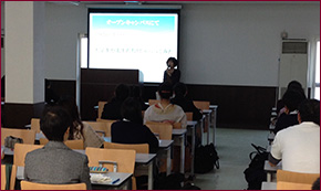 国公立大学推薦入試説明会本校卒業後に、京都市立芸術大学や京都教育大学などの国公立大学に進学し、現在、社会の第一線で活躍している卒業生を講師に迎えての説明会です。独立行政法人化に伴い、全国の国公立大学でAO入試や推薦入試が実施されるようになりました。その情報をいち早く、そして、わかりやすく保護者の皆様や生徒たちにお伝えします。