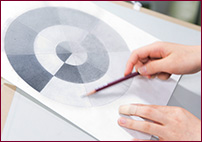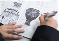 描こうとする対象をよく観察し、形や特徴を的確に捉える力を育てます。鉛筆で明暗を描き、立体感・質感・遠近感などを表現します。客観的にモチーフを描写する静物デッサンからイメージを具象化する想定デッサンまで、デッサンの基本を学びます。